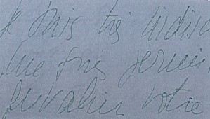 etc... chaque écriture comporte bien des voies d'accès pour l'analyser; sans que la synthèse soit d'ailleurs définitive puisque les évolutions de désirs comme leur réalisation apporteront à chaque fois leur marque... Les spécimens sélectionnés comporteront donc davantage une ou des dominantes en rapport avec le point traité, sans exclure d'autres déductions possibles bien évidemment. Et précisons une fois pour toutes: qu'une espèce graphique et un syndrome de signes sont à situer dans le milieu graphique global, et ne doivent jamais être interprétés seuls.